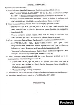 Maxkamadda gobolka Banaadir ayaa lix sarkaal ku heshay eedo la xiriira musuqmaasuq, waxayna ku kala xukuntay xabsiyo u dhexeeya lix bilood ilaa sagaal sanno. Maxkmadda ayaa sidoo kale sheegtay shan sarkaal oo kale in lagu waayay eedihii lagu soo oogay.